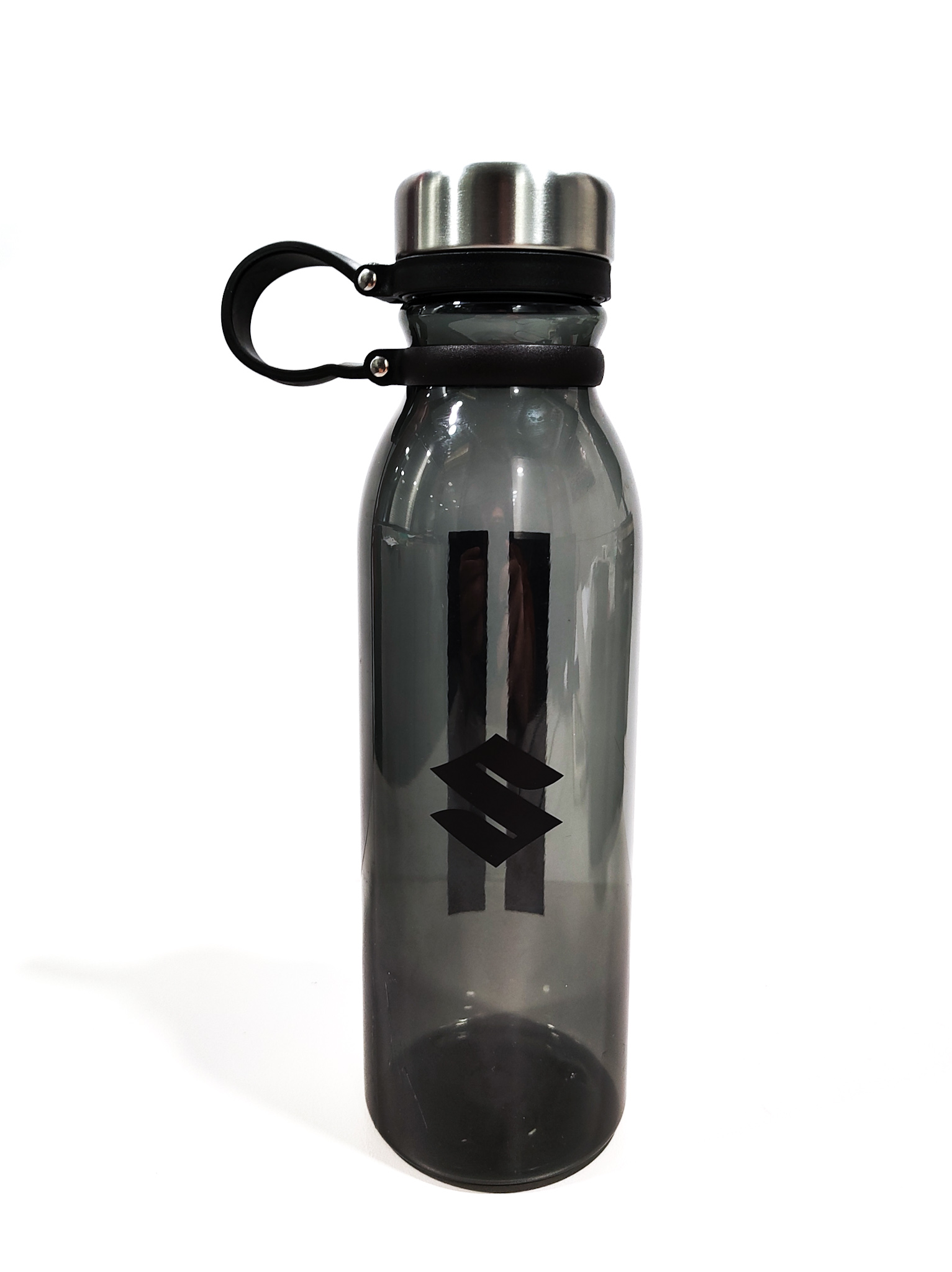 Μπουκάλι με  μαύρο λογότυπο  SUZUKI στο μπροστινό μέρος. Ασημένιο , αρθρωτό καπάκι με γκρι λωρίδα, χωρικτικότητα 740 ml, υλικό  κατασκευασμένο από Eastman.